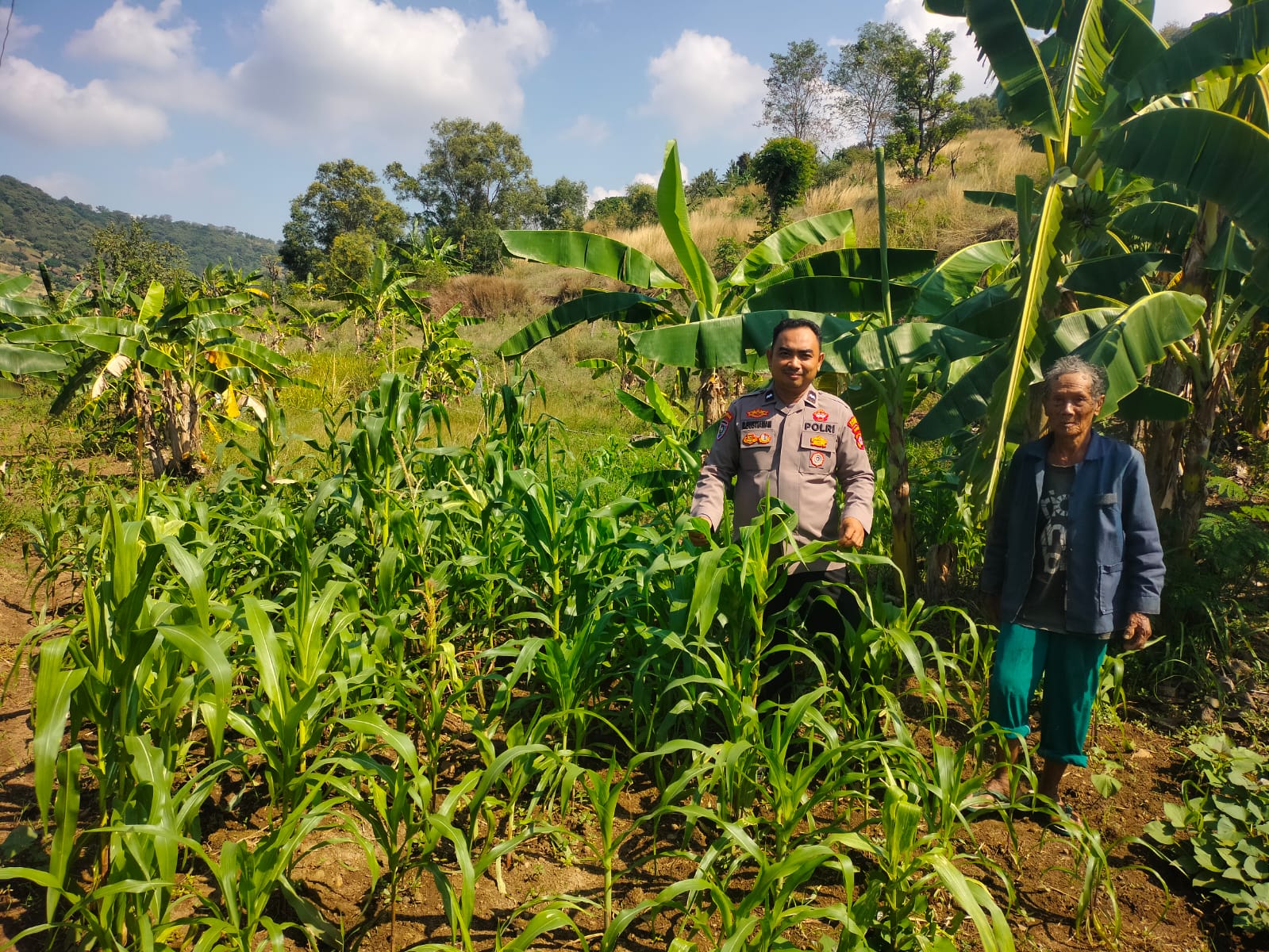 Pantau lahan jagung pok tani sinarjaya kecamatan.puloampel Ds. Banyuwangi oleh Bhabinkamtibmas Polsek Puloampel