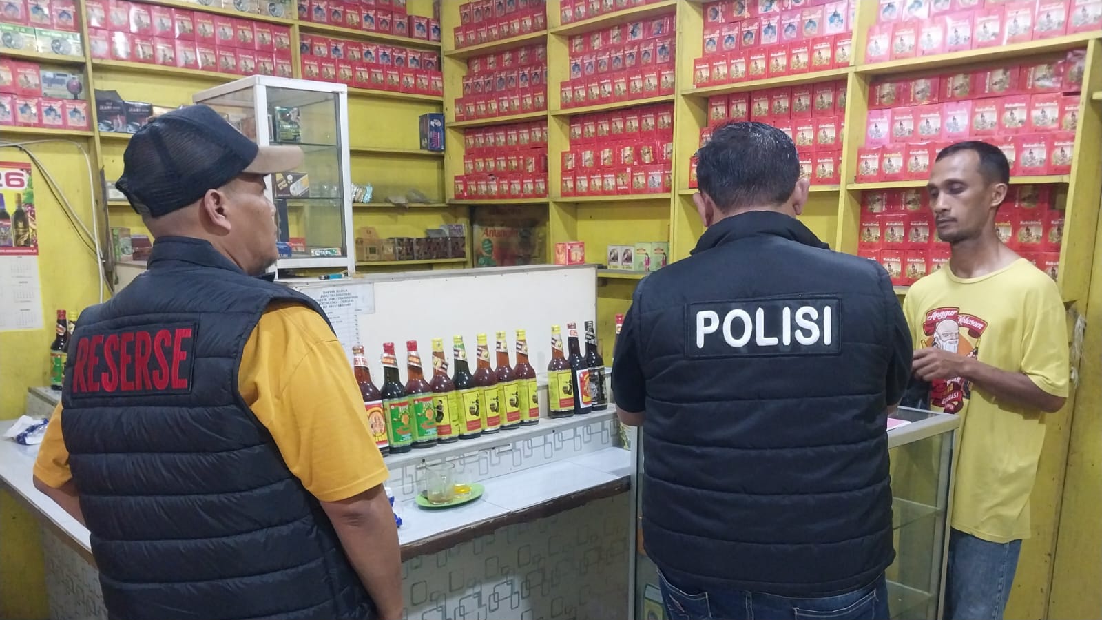 Polsek Ciwandan Laksanakan OPS Pekat Maung 2026, Amankan Miras di Warung Jamu.