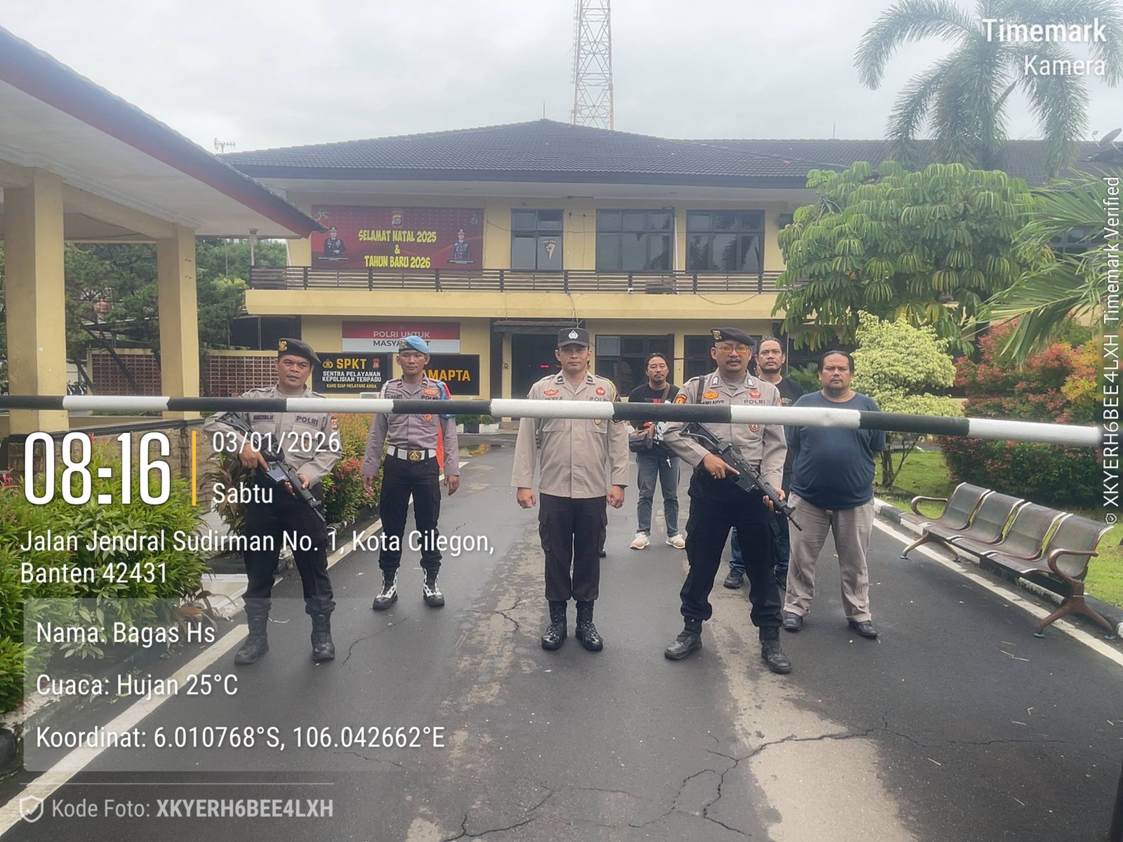 Cilegon, personel Satreskrim Polres Cilegon Polda Banten melaksanakan piket di penjagaan pintu masuk Polres Cilegon Polda Banten untuk memastikan mako Polres Cilegon dalam keadaan aman dan nyaman dalam melayani Masyarakat tanpa adanya gangguan kejahatan. Jumat (03/01/2026).