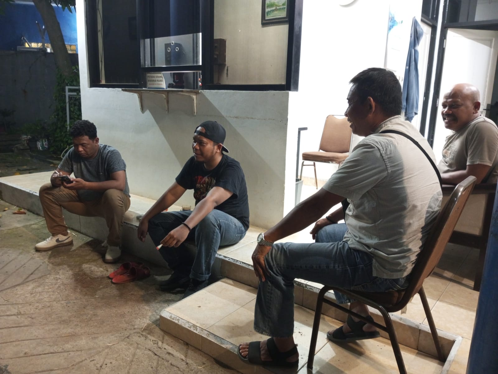Personil sat intelkam melakukan koordinasi dengan tokoh pemuda kec. Pulomerak kota cilegon.