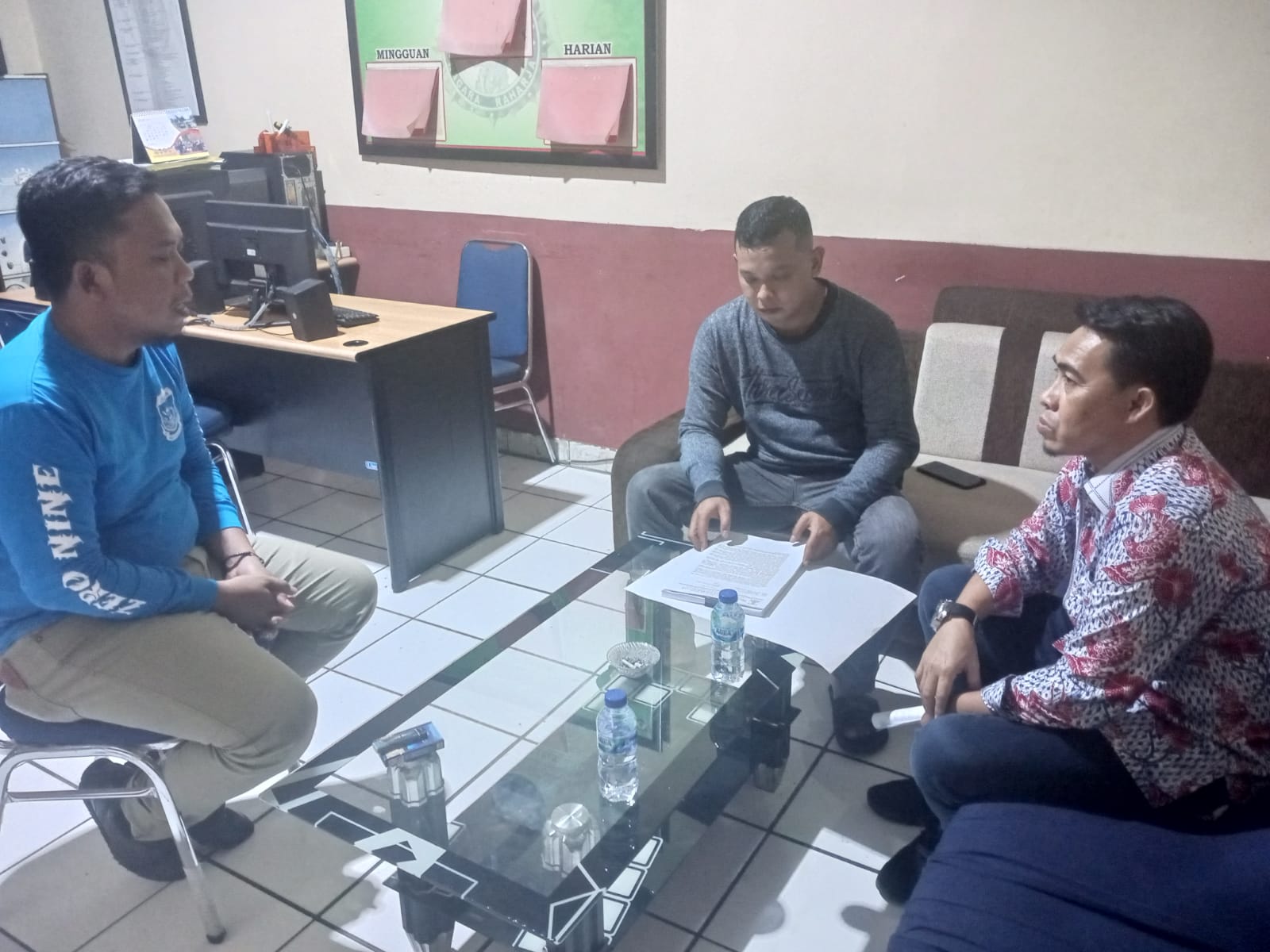 Personil sat intelkam melakukan koordinasi dengan tokoh pemuda kec. Mancak kabupaten serang.
