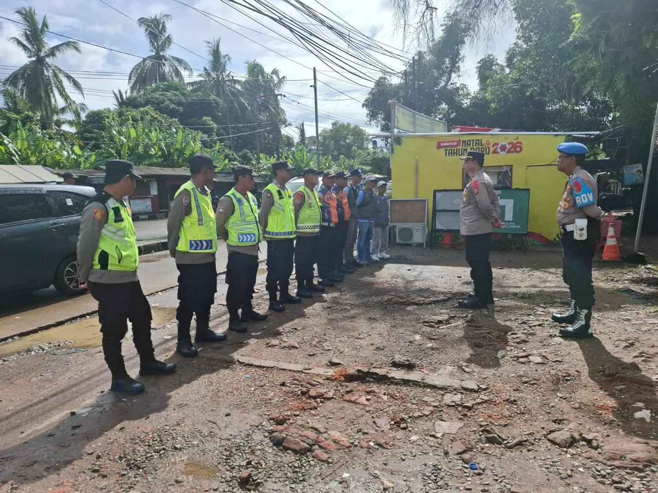 *POLRES CILEGON* Polda Banten. Menjaga kegiatan dan memastikan Aman Polsek Cinangka Polres Cilegon terjunkan Petugas menjaga pengamanan kegiatan PAM Natal dan tahun baru di Pospam Cinangka Kecamatan Cinangka. Senin (05/01/2026).