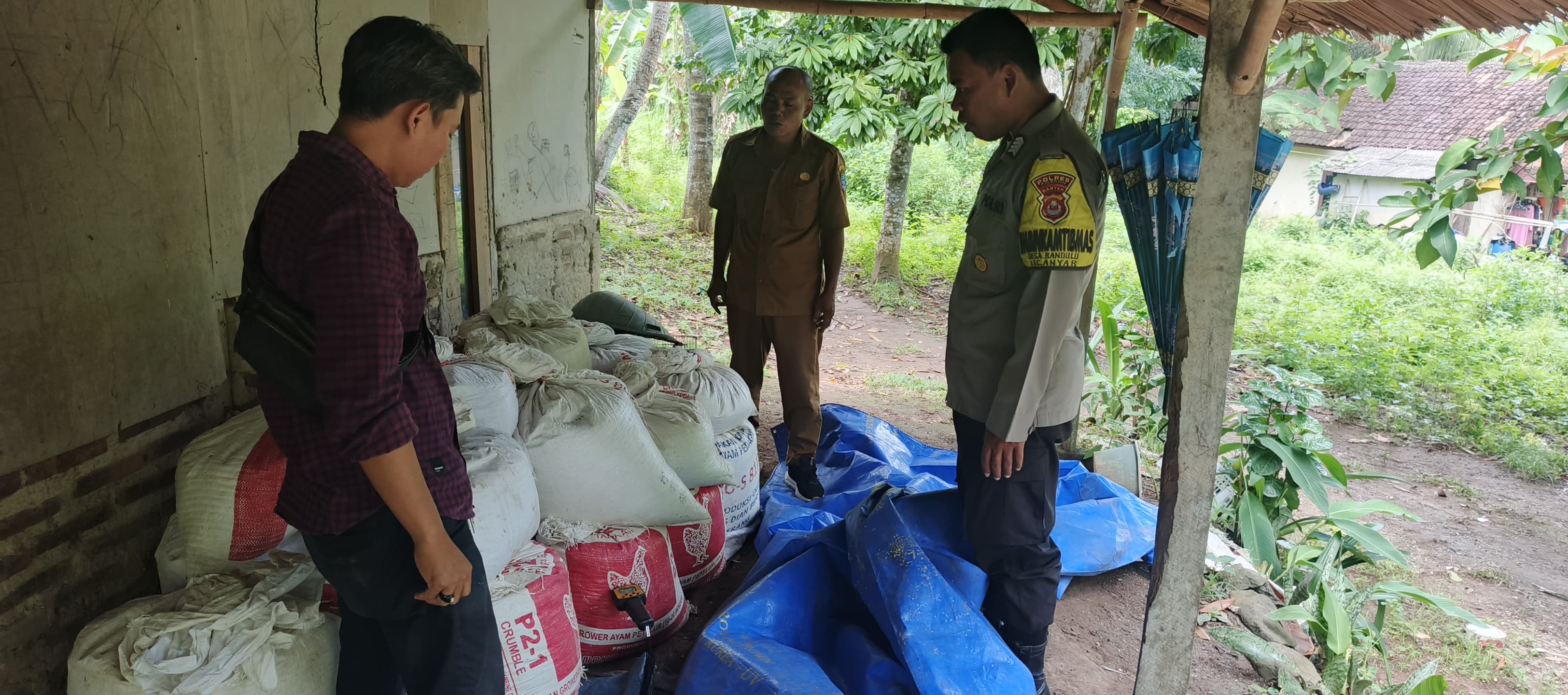 Bhabinkamtibmas Polsek Anyar Bersama Sekretaris Desa Bandulu Melaksanakan Dan Pendampingan Pada Pemeriksaan Kadar Air Jagung