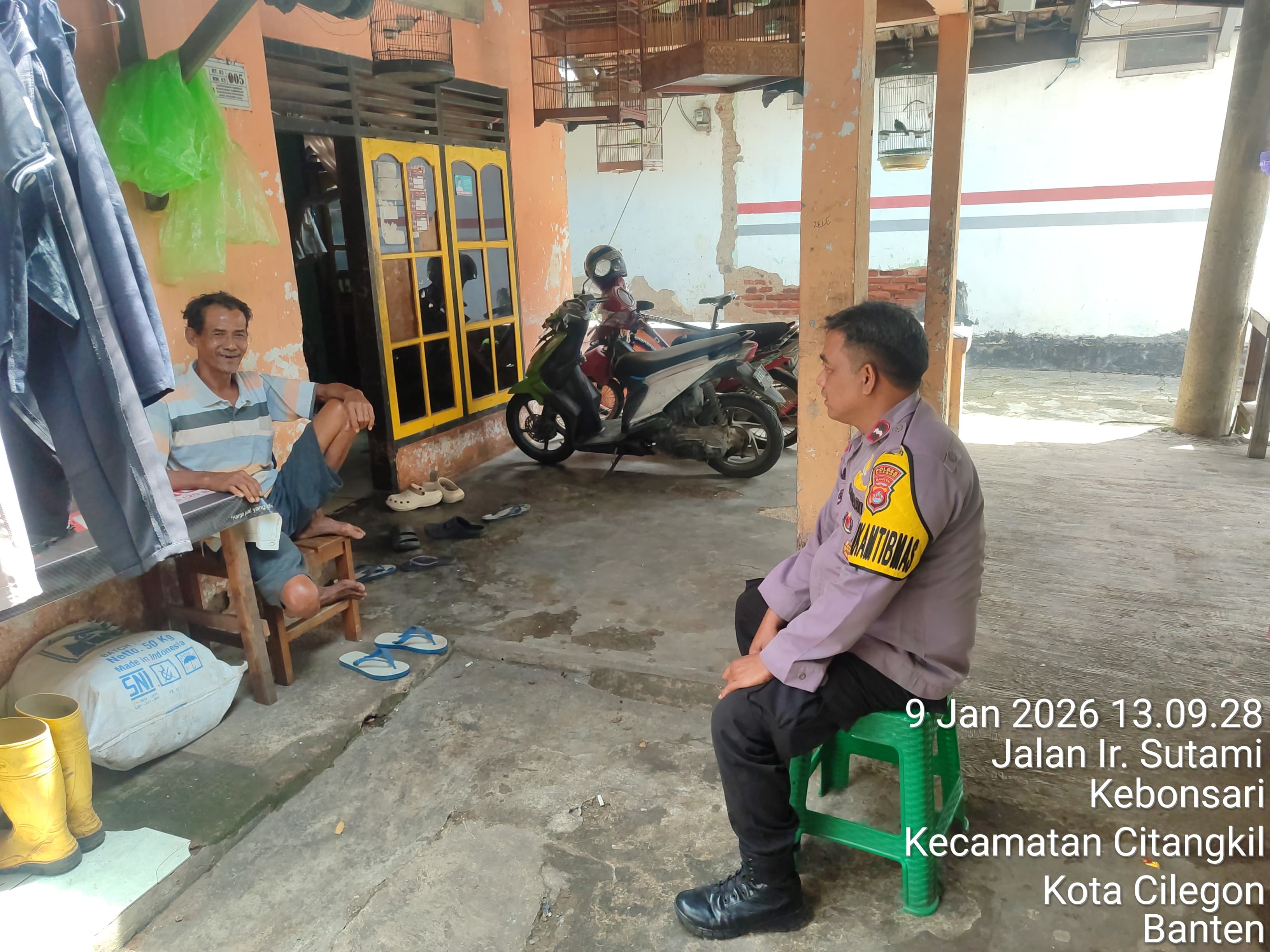 Cilegon - Bhabinkamtibmas Polsek Ciwandan Polres Cilegon Polda Banten  Melaksanakan kegiatan Dialogis/Sambang Door to Door Sistem (DDS) Di daerah binaannya serta memberikan Pesan-pesan Kamtibmas Guna Menciptakan situasi Harkamtibmas yang Aman dan nyaman, Jum'at (09/01/2026).
