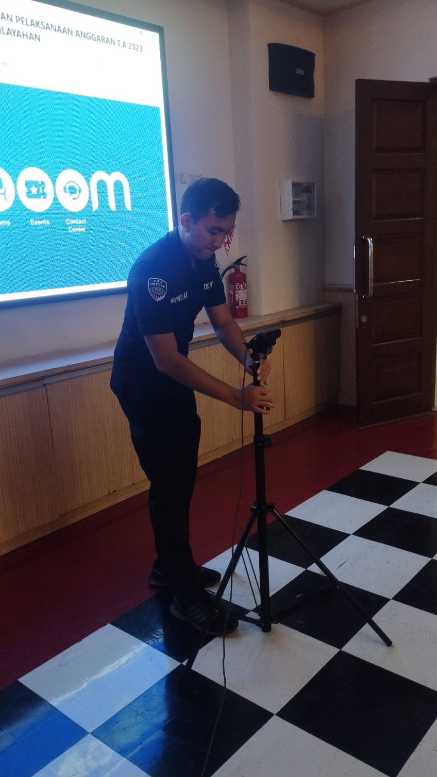 Anggota Tik Polres Cilegon Menyiapkan Sarana dan Prasarana Untuk Kegiatan Zoom meeting Dalam pelaksanaan kegiatan zoom meeting tersebut anggota TIK Polres Cilegon yang bertanggung jawab untuk menyiapkan peralatan zoom. Selain itu agar di tidak ada gangguan jaringan sebelum pelaksanaan anggota TIK melakukan pemeriksaan terhadap sarana dan prasarana tersebut . Satu jam sebelum kegiatan zoom meeting itu dimulai. Kapolres Cilegon AKBP. DR. MARTUA RAJA TARIPAR LAUT SILITONGA. melalui Kasi TIK AIPTU Suwanto, S.H. menyampaikan bahwa “untuk menunjang kelancaran penyampaian informasi anggota TIk Polres Cilegon selalu memeriksa sarana dan prasarana tersebut, sebelum maupun pada saat pelaksanaan akan selalu di monitor”
