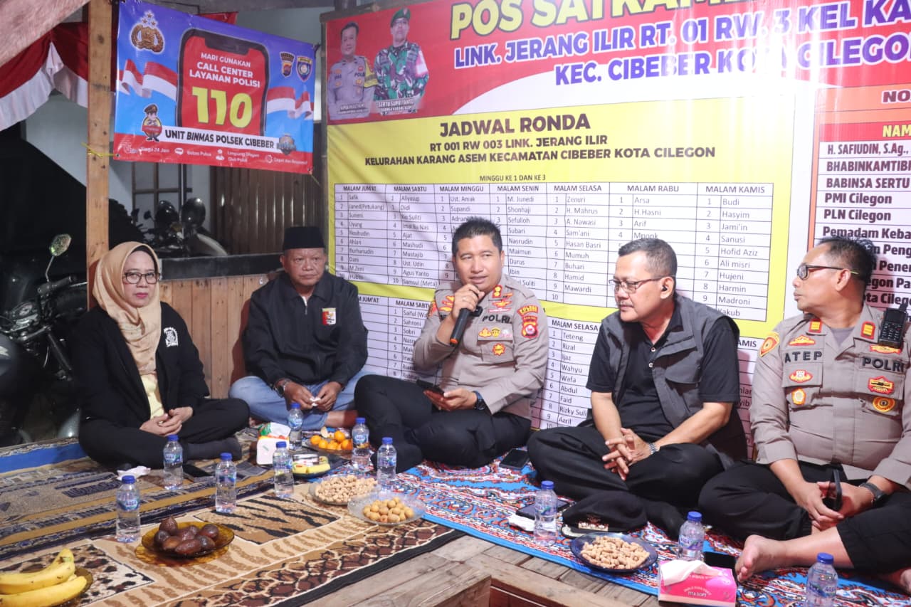 Kunjungan tersebut juga dihadiri unsur pemerintah daerah dan tokoh masyarakat, antara lain Camat Cibeber Sofan Maksudi, S.Sos., M.Si., Lurah Karangasem H. Safiudin, S.Ag., M.M., Anggota DPRD Kota Cilegon Hj. Abadiyah, S.Pd.I., Ketua FKPM Kota Cilegon Rohimin, Ketua RW 003 Nurul Huda, M.M., para Ketua RT, tokoh masyarakat Jerang Ilir H. Dasep, Babinsa Karangasem Sertu Supriyanto, anggota Linmas, serta warga setempat yang sedang melaksanakan ronda malam.