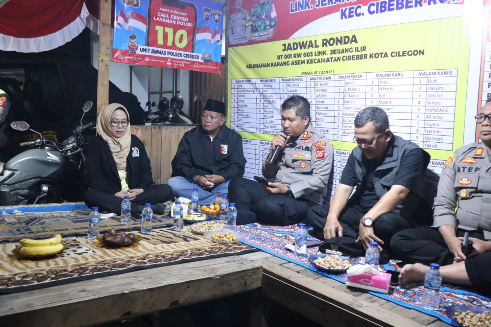 Kegiatan yang berlangsung sekitar pukul 22.16 WIB tersebut dihadiri langsung Kapolres Cilegon bersama jajaran pejabat utama Polres Cilegon, di antaranya Kabag Ops AKP Choirul Anam, S.H., M.H., M.Si., Kasat Binmas IPTU Muhyiddin, S.H., Kasie Propam AKP Herry Susanto, S.H., M.M., serta Kasat Lantas AKP Ridwan, S.T.K., S.I.K., M.H. Turut mendampingi Kapolsek Cibeber AKP Atep Mulyana, S.H., M.Si. bersama jajaran fungsi pembinaan dan Bhabinkamtibmas.