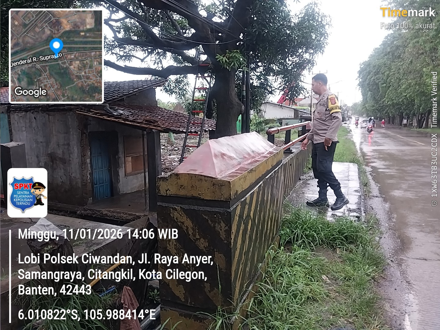 Kapolres Cilegon Polda Banten AKBP Dr. Martua Raja Taripar Laut Silitonga melalui Kapolsek ciwandan Kompol Andi Suherman mengatakan bahwa atas perintahnya kepada seluruh Babinkamtibmas jajaran Polsek ciwandan agar mengantisipasi cuaca yang akhir-akhir ini sering turun hujan lebat dan mengecek debit air aliran sungai yang ada di lingkungan binaan masing-masing