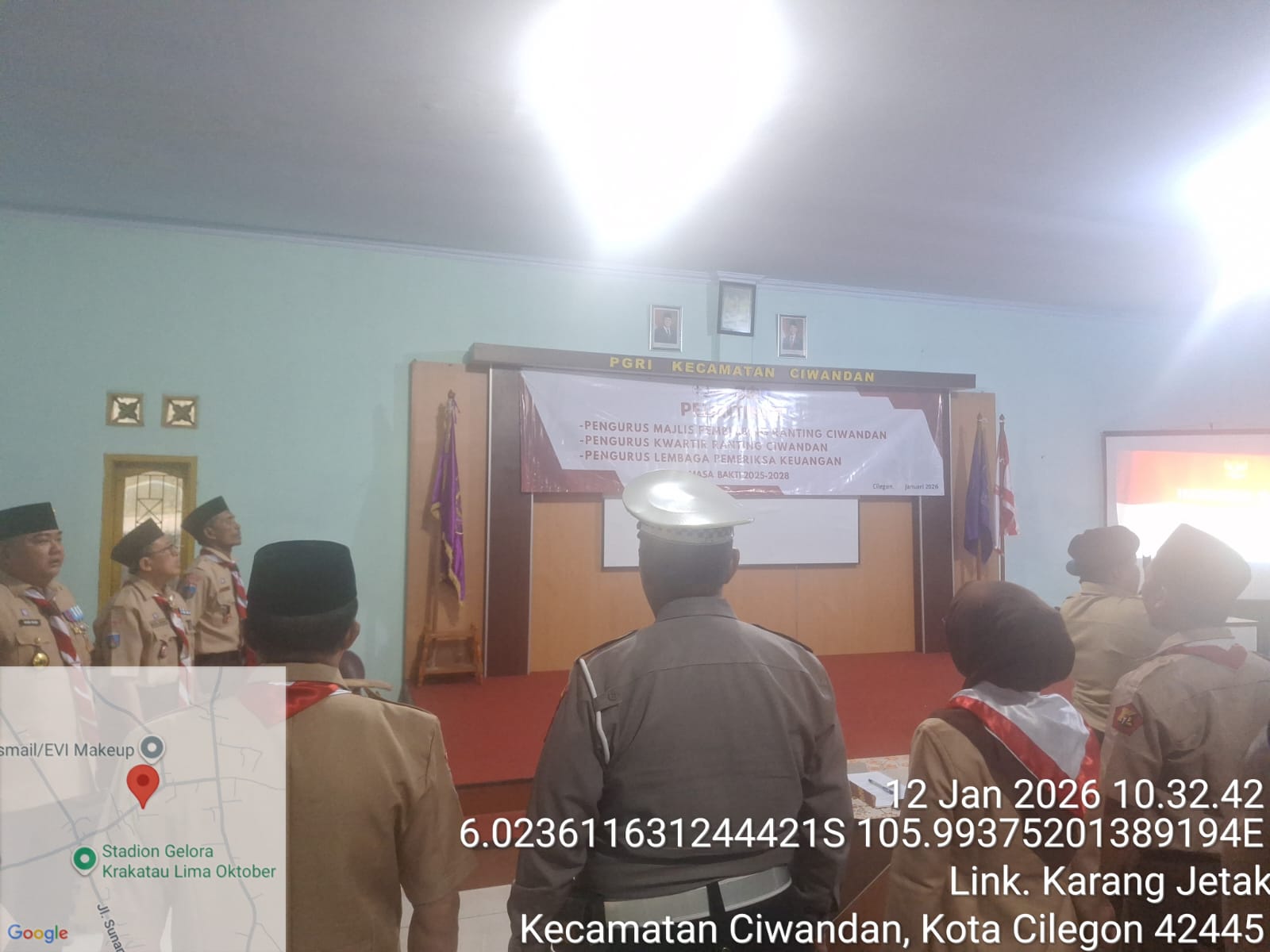 Cilegon - Polres Cilegon melalui Polsek Ciwandan menghadiri pelantikan pengurus Majlis Pembimbing Ranting Ciwandan, Pengurus Kwartir Ranting Ciwandan, dan Pengurus Lembaga Keuangan Masa Bakti 2025-2026 di Gedung PGRI Kecamatan Ciwandan. Senin (12/01/2026).