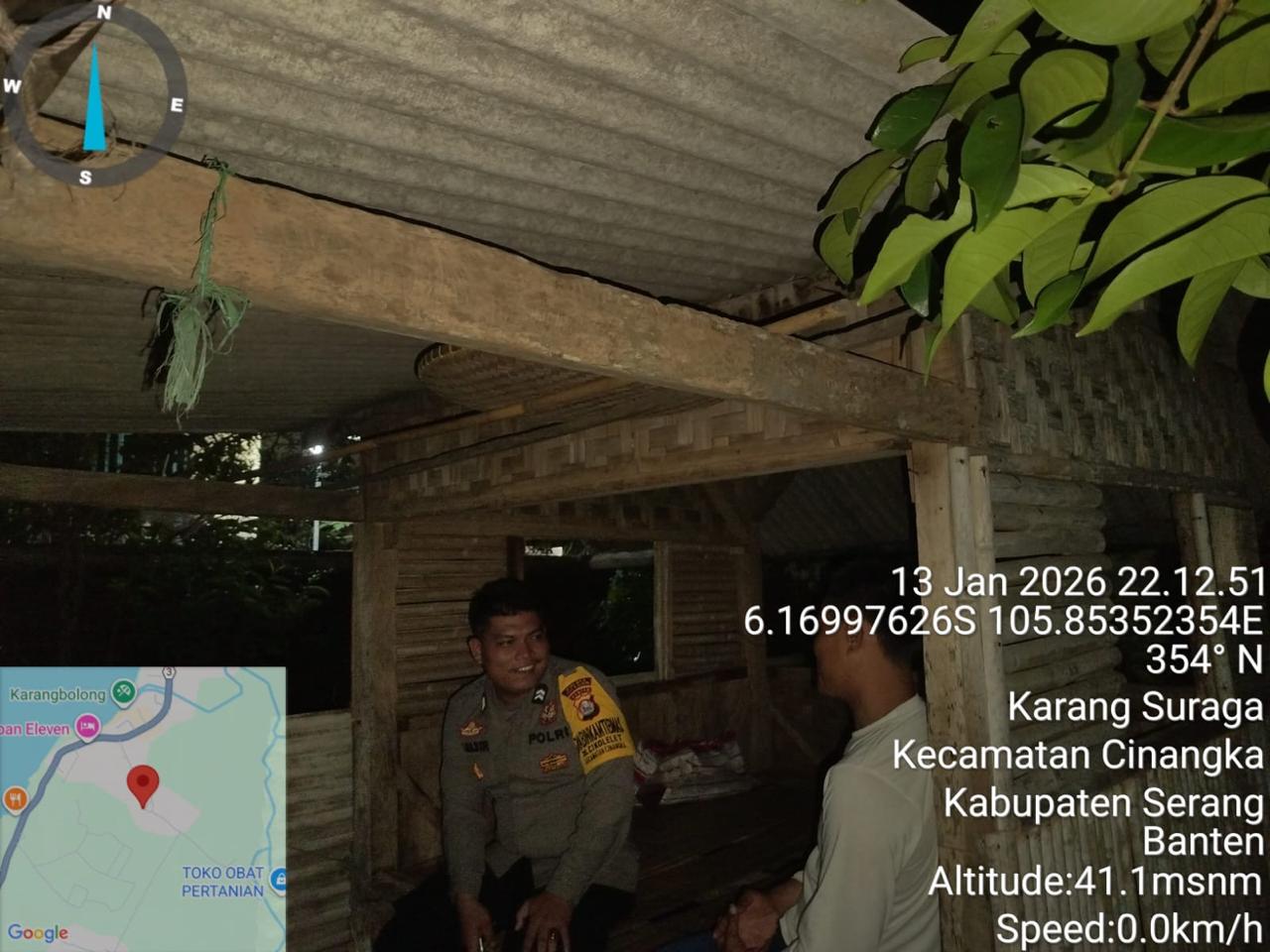 Seperti biasanya di jam – jam rawan anggota Polsek Cinangka Polres Cilegon Polda Banten melakukan patroli kewilayahan dengan sasaran tempat-tempat yang dianggap rawan tindak kejahatan, untuk kali ini anggota patroli Polsek Cinangka berpatroli menyasar ke Pemukiman warga Serta di jalan-jalan yang rawan di Cinangka , Kab Serang.