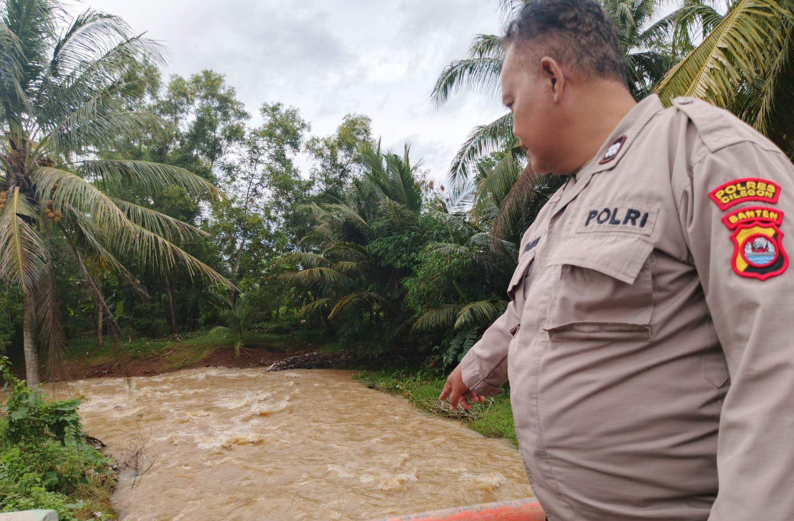 Cilegon - Personel Polsek Anyar Polres Cilegon Polda Banten melaksanakan Patroli kewilayahan mengecek debit air di Sungai pasca Hujan antisipasi banjir di wilayah Kec. Anyar, Rabu (14/01).