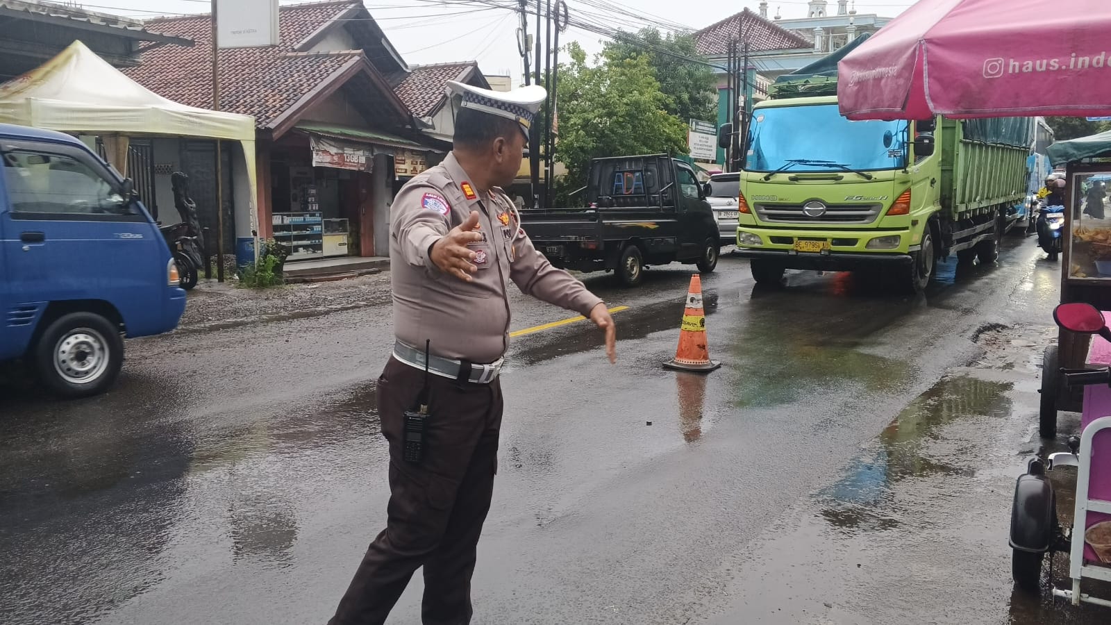 Kanit lantas Polsek Pulomerak bantu Lancarkan arus lalin saat mobil truk mogok
