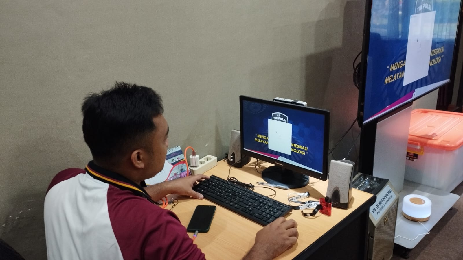 Anggota Tik Polres Cilegon Menyiapkan Sarana dan Prasarana Untuk Kegiatan Zoom meeting Dalam pelaksanaan kegiatan zoom meeting tersebut anggota TIK Polres Cilegon yang bertanggung jawab untuk menyiapkan peralatan zoom. Selain itu agar di tidak ada gangguan jaringan sebelum pelaksanaan anggota TIK melakukan pemeriksaan terhadap sarana dan prasarana tersebut . Satu jam sebelum kegiatan zoom meeting itu dimulai. Kapolres Cilegon AKBP. DR. MARTUA RAJA TARIPAR LAUT SILITONGA. melalui Kasi TIK AIPTU Suwanto, S.H. menyampaikan bahwa “untuk menunjang kelancaran penyampaian informasi anggota TIk Polres Cilegon selalu memeriksa sarana dan prasarana tersebut, sebelum maupun pada saat pelaksanaan akan selalu di monitor”