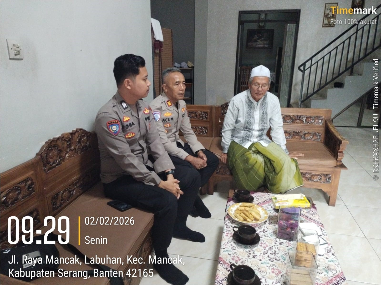 Cilegon – Polres Cilegon Polda Banten, Kapolsek Mancak dan Bhabinkamtibmas melaksanakan Patroli Dialogis dan Bersilaturahmi dengan salah satu Tokoh Agama di Desa Labuan Kec. Mancak Kab. Serang. Senin (02/02/2026).