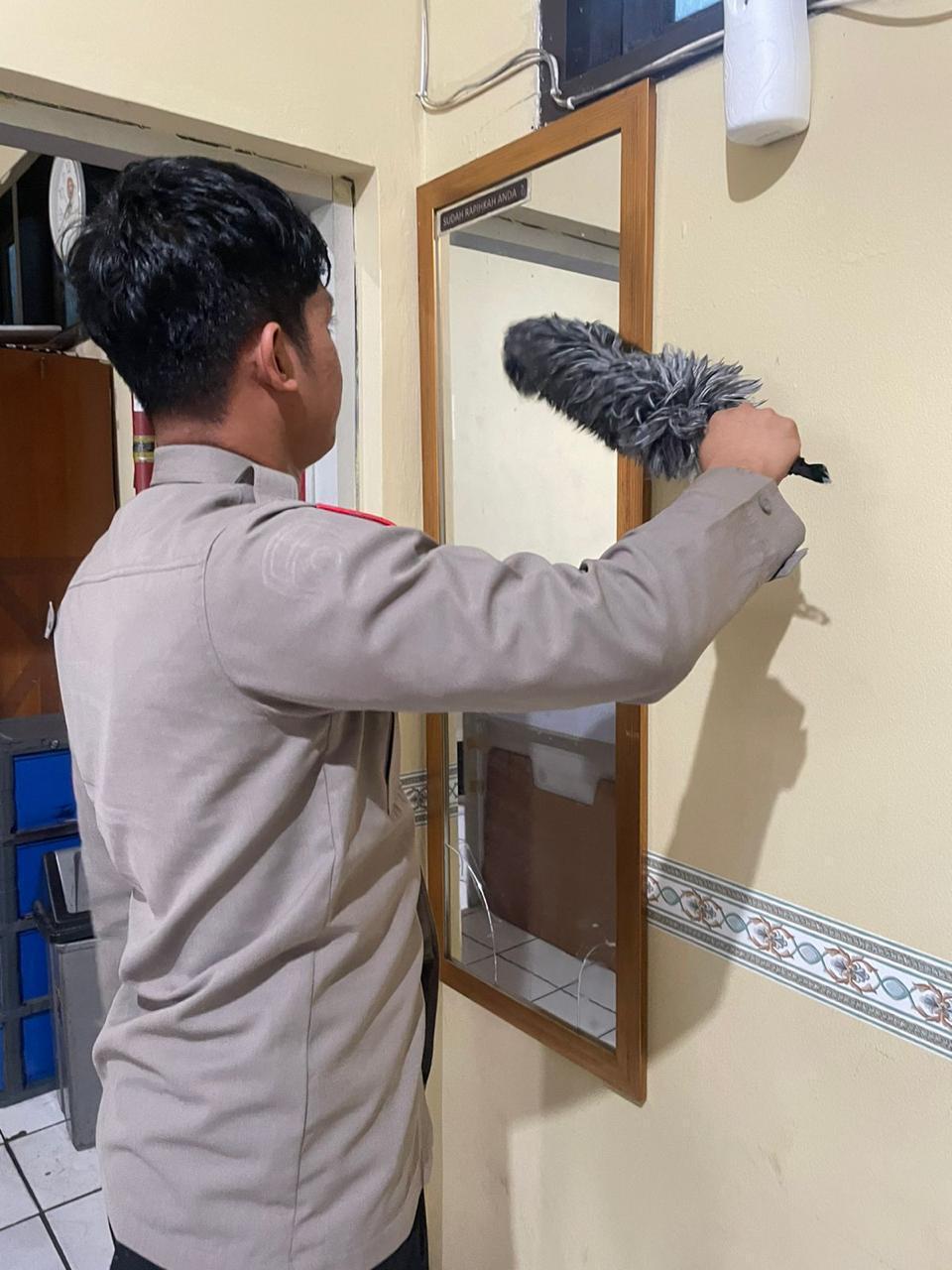 Anggota Bag SDM Polres Cilegon, melaksanakan Kkegiatan Bersih bersih ruangan kerja agar terciptanya nyaman dan bersih