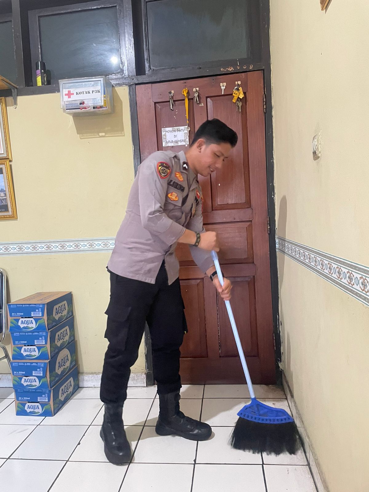 Anggota Bag SDM Polres Cilegon, selalu melakukan kegiatan membersihkan rruangan kerja secara rutin.