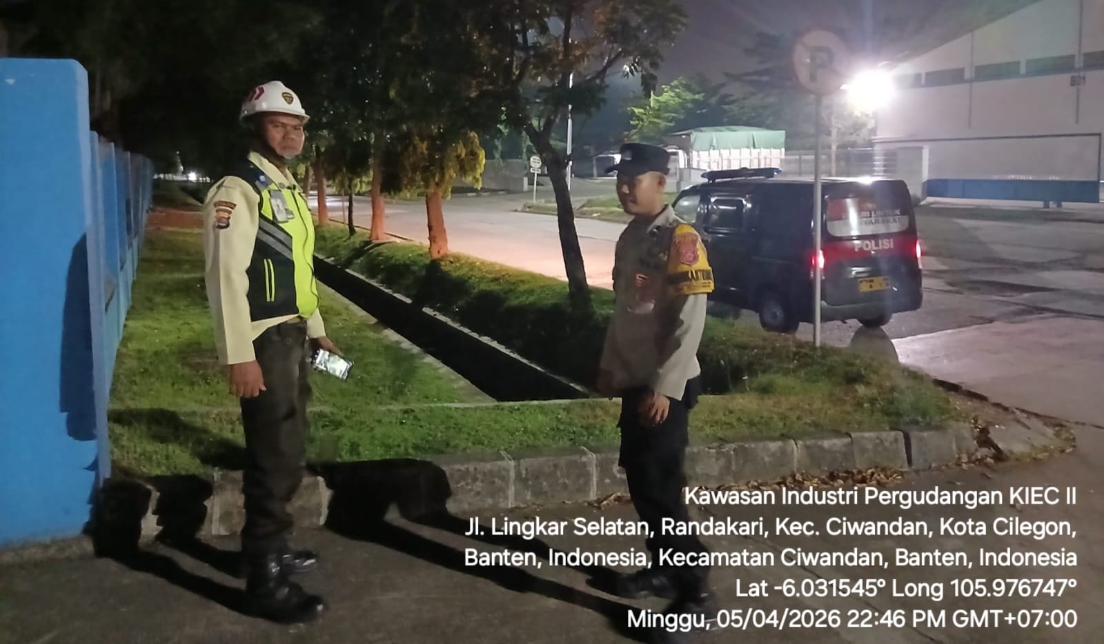 Cilegon - Demi Menjaga keamanan Daerah Hukum Polsek Ciwandan agar tetap kondusif, Personil Polsek Ciwandan Polres Cilegon Polda Banten Melakukan kegiatan sambang kamtibmas Dan Patroli Bersama Security, Senin (06/04/2026).