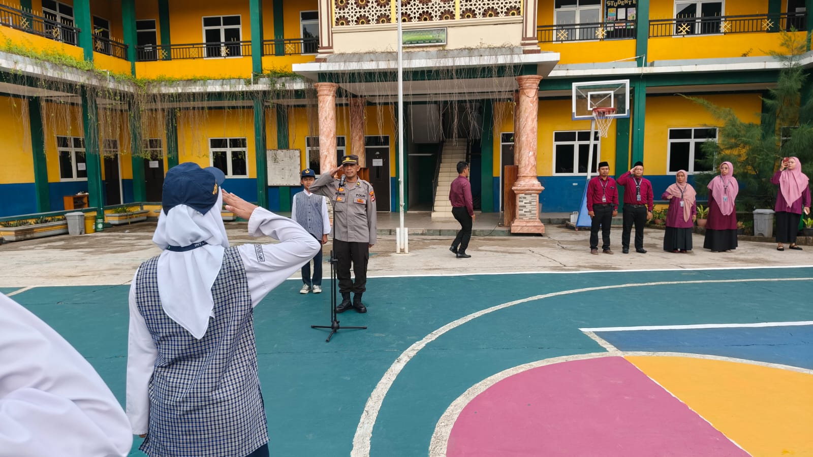 Selain itu, IPTU MUSTRIATNO juga memberikan pengetahuan tentang fungsi-fungsi Kepolisian dan tugas-tugasnya, serta mengingatkan para siswa untuk bijak dalam bermedsos. Kegiatan ini bertujuan untuk meningkatkan kesadaran dan pengetahuan siswa tentang pentingnya pendidikan dan peran Kepolisian dalam menjaga keamanan dan ketertiban masyarakat.