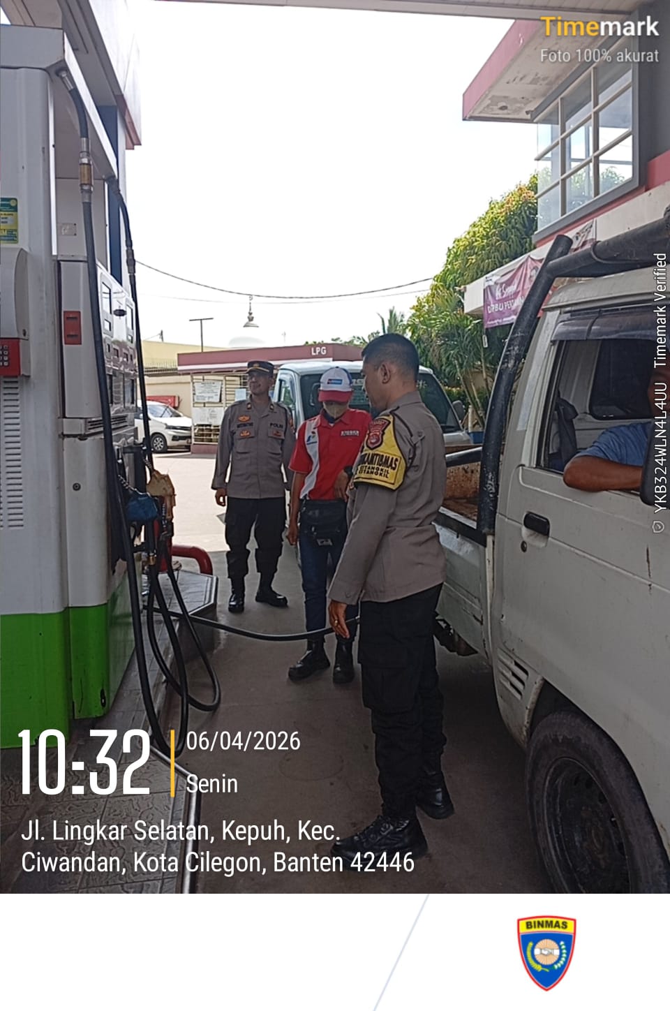 Monitoring SPBU,Personil Polsek Ciwandan Pastikan Stok BBM Tersedia